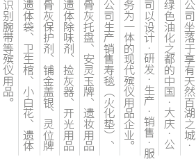 公司秉承“質(zhì)量為本、我們要做的是唯一、而不是第一”的經(jīng)營服務(wù)理念,堅持以誠信為先、服務(wù)至上、創(chuàng)新發(fā)展為立業(yè)之本,以鄭重的承諾和完善的服務(wù)為信譽保證,不斷專研、開發(fā)、生產(chǎn)出盡善盡美的高科技殯儀產(chǎn)品...